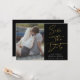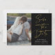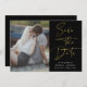 This elegantly casual save the date features a photo (portrait orientation) and modern calligraphy that reads "Save the Date" in gold lettering against a black background. Customize with your names, wedding date, and wedding location below the gold script typography. The customizable back of the card can accommodate additional information and photos.