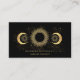 A celestial ethereal massage therapist or counsellor business card, featuring a modern gold sun mandala with sun rays, and phases of the moon, with Faux gold foil effect. Also suitable for reiki, energy healer, or other body worker.