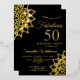 A beautiful Shining Elegant Birthday Invitation with Fabulous 50 real gold foil script and intricate floral gold Mandalas representing the realization of our Golden Dreams, on a black background. 50 is such an important step in one's life that deserves to be Celebrated in a brilliant way. Perfect for an elegant celebration under a starry summer night or at any time of the year. Original Hand-Drawn Mandala by SunFreeStar. Contact me for any help or for matching products.