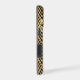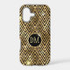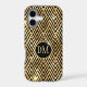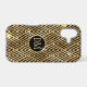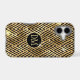 This elegant phone case features your two letter monogram in pale gold at the centre of a black circle banner that is double framed in gold. The banner is placed on a gold and black geometric diamond pattern background. Tiny silver and gold star shines make this case shine!