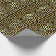 Decorative and elegant black and gold gift wrapping paper featuring shiny gold squares intricately linked to produce a captivating 3D illusion.