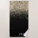 Gold Black Glitter Girly Monogram Initials Beach Towel