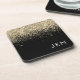Black and Gold Glitter Script Monogram Name Paper Coasters. This makes the perfect graduation, birthday, wedding, bridal shower, anniversary, baby shower or bachelorette party gift for someone that loves glam luxury and chic styles.