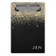 Gold Black Glitter Girly Monogram Initials Mini Clipboard