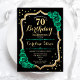 70th Birthday Party Invitation. Elegant floral emerald green design with faux glitter gold, roses and script font. Perfect for a stylish womens bday celebration. Can be customised for any age! Printed Zazzle invitations or instant download digital printable template.