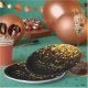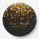 These classy wedding paper plates feature a black background with gold sparkles raining down. Personalize these plates for a one-of-a-kind touch with your names and wedding date. Coordinates perfectly with our Hollywood Glitz Glam Wedding Collection.