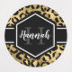 Chic gold and black leopard print sticker labels with a custom name and monogram template. A cute and trendy safari animal print pattern background topped with your own bit of personalization.