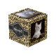 Chic gold and black leopard print photo cube with a custom name and monogram template. A cute and trendy safari animal print pattern background topped with your own bit of personalization.