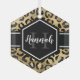 Chic gold and black leopard print glass ornament with a custom name and monogram template. A cute and trendy safari animal print pattern background topped with your own bit of personalization.