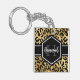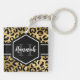 Chic gold and black leopard print keychain with a custom name and monogram template. A cute and trendy safari animal print pattern background topped with your own bit of personalization.