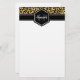 Chic gold and black leopard print stationery paper with a custom name and monogram template. A cute and trendy safari animal print pattern background topped with your own bit of personalization.