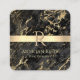 Gold & Black Marble, Gold Bar, Name Monogram Info Square Business Card