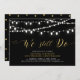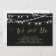 Celebrate your special day with this stylish modern anniversary party invitation template. This design features beautiful string lights with a gold & black colour theme.