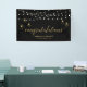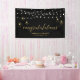 This event banner design features stylish gold geometric string lights and "Congratulations" typography on a black background. This congratulations banner is the perfect decoration for modern events. You can customize the name and text at the bottom of the banner for your events.