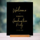 Welcome your guest with this modern graduation welcome sign. This sign features a simple script "Welcome to Graduation Party" in gold & black colour theme. You can customize the name and the date. Matching invitations and party supplies are available at my shop BaraBomDesign.