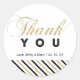 This modern thank you sticker features gold glitter & black typography and stripes. Perfect for chic modern party favours. More matching items available in my shop BaraBomDesign. (invitation, thank you card, thank you tag, book request card, and more)