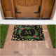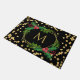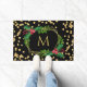 Gold Black Monogram Merry Christmas Holly Glitter Doormat