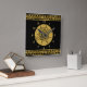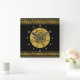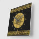 This unique and interesting clock features old style borders of gold leaves on the top and bottom. At the centre is a line drawn rose image on gold which is framed by gold numbers. Everything is placed on dramatic black. Elegant!
