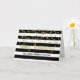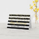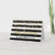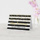 Employee or staff anniversary greeting card in modern black and white stripes and gold confetti pattern.
