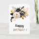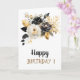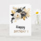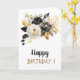 Gold Black White Flowers Birthday Card