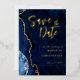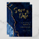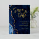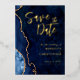 Elegant blue marble agate with gold glitter wedding real gold foil save the date card.