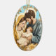 The front of this beautiful Christmas ornament has an image of Mary and Joseph with the Baby Jesus. The image is within a gold leaf and floral frame. The back of the ornament has gold text that says CHRISTMAS BLESSINGS, and text fields for you to customize.