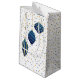 Dark blue and gold Christmas tree ornaments, blue and gold dots on your choice of background colour, use these personalized SMALL gift bags are perfect to wrap your party favours, business gifts, corporate gifts and more. ALL SIZE GIFT BAGS already created for you in our store PLUS matching gift tags, stickers, plates, napkins, invitations and more in our store.