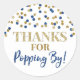 Gold Blue Confetti Thanks for Popping By Classic Round Sticker