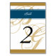 Gold Blue Elegant Script Monogram Wedding Table Number