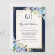 Gold Blue floral Sparkle 60th Birthday Invitation
