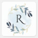 GOLD BLUE FOLIAGE WATERCOLOR WREATH MONOGRAM SQUARE STICKER