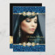 Gold Blue Glitter & Jewel Bow Quinceanera Invitation