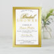 A classic gold striped bridal shower invitation with customized text in decorative way presented to appear elegant. Gold metal design with dark gold boarder in elegant appearance.