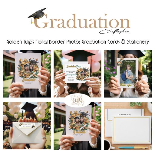 Modern Golden Tulips Floral Border GraduationDesigned by Houria Sabrine