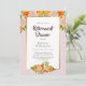 A gold, blush pink and orange floral retirement dinner party invitation.