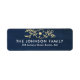 Simple and legible return address label featuring hand drawn flowers in faux gold foil on a textured navy background. Visit the shop to see the rest of the collection!