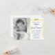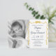 Elegant Baptism event invitation in navy blue with gold bow. It is personalized with your custom photo. Find matching products in our shop or contact us.