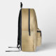 This personalized backpack features a monogram and first name in modern black and white script on an elegant gold faux brushed metal background. Add the full name below in black sans serif font. Ideal for back to school!