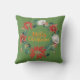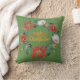 Gold Brushscript Christmas Floral Wreath on Green Throw Pillow