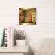 Gold Buddha Green Leaves & Red Flowers Square Wall Clock