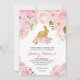 Gold Bunny birthday pink Floral Invitation, Invitation
