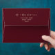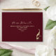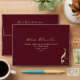 Simple, modern calligraphy, elegant burgundy wedding invitation 5x7 envelope with return address and gothic faux gold foil greyhound dog silhouette at the front with full guest address template.
