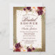 Gold Burgundy floral Sparkle Bridal Shower Invitation