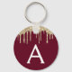 Gold Burgundy Girly Sparkly Glitter Monogram Keychain