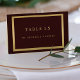 Elegant simple minimalist jewel tone of deep burgundy and faux gold typography wedding place card with table number and individual guest name.++++++++ Personalize it further with the wedding's couple names and date on the backside. NOTE: Add the table number and guest name for each card and add each one to the cart separately. Fold the card on the guide middle line.