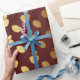 Gold Burgundy Maroon Metallic Apple Fruits Foil Wrapping Paper