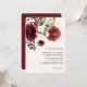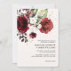 Rustic and elegant bouquet of flowers with gold floral outline, burgundy, wine and blush roses along the top of the wedding invitation.
