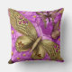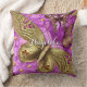 Gold Butterflies Pink Flowers Personalized Name Throw Pillow