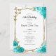 Gold Butterflies Teal Roses 18th Debut Birthday Invitation