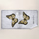 Enjoy your day at the beach or poolside with a Gold Butterfly Floral Personalized Beach Towel. Towel design features a pair of vibrant butterflies resting on a white floral vine against a light grey grunge background. Additional gift items available with this design as well as a variety of colours.